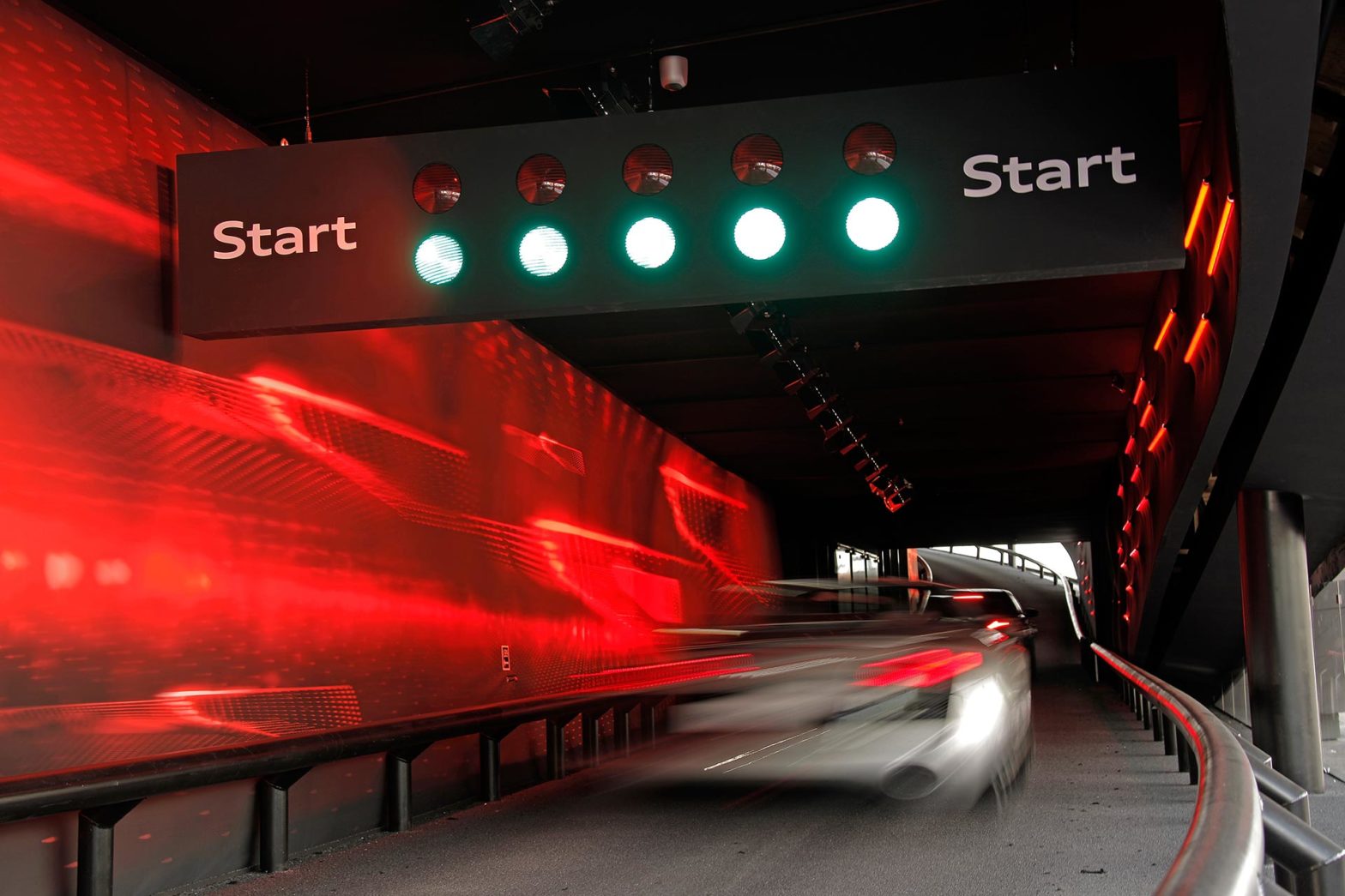 Alles ist auf die Einbindung der Besucher:innnen ausgerichtet –manifestiert durch die Möglichkeit, auf der 400 m langen Fahrstrecke des Audi Rings ausgewählte Fahrzeuge live zu erleben.