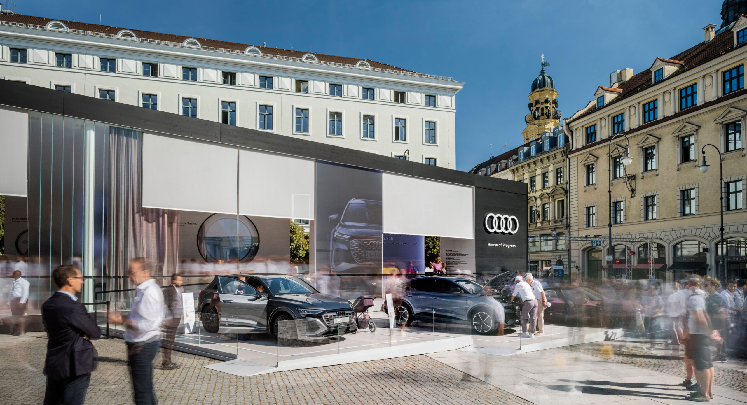 Unter dem Motto “VORSPRUNG FÜHLEN” werden die aktuellen Produktinnovationen von Audi in den Mittelpunkt gerückt und den Besucher:innen eine einzigartige und aufregende Erfahrung geboten, bei der sie die Haltung sowie den Einsatz progressiver Ideen von Audi hautnah erleben können. Das Konzept konzentriert sich unter “Progress you can feel” darauf, einen offenen Raum der Kommunikation zu schaffen und das Thema Nachhaltigkeit konsequent zu integrieren.