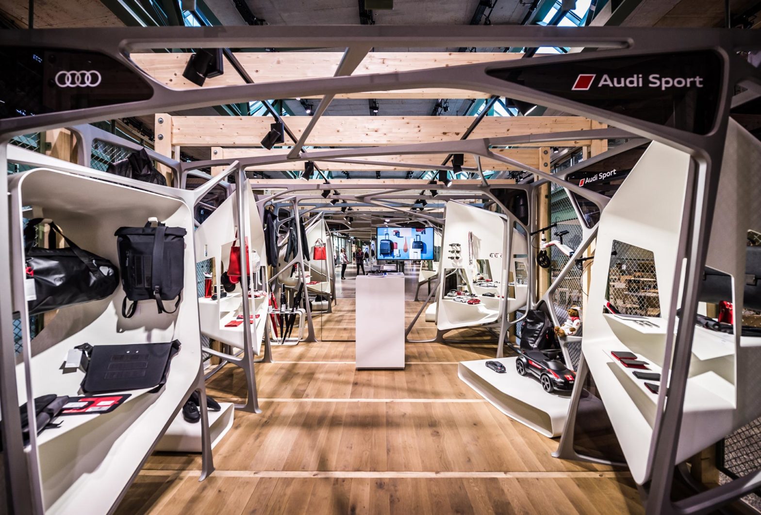 Im Audi Ultrastore werden die Kernbotschaften von Audi einmal mehr zum begehbaren Markenerlebnis und zeigen Audis Vorreiterrolle in der Verbindung von Leichtbau und Effizienz.