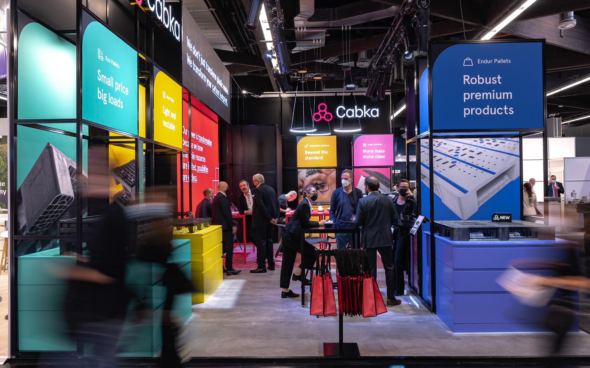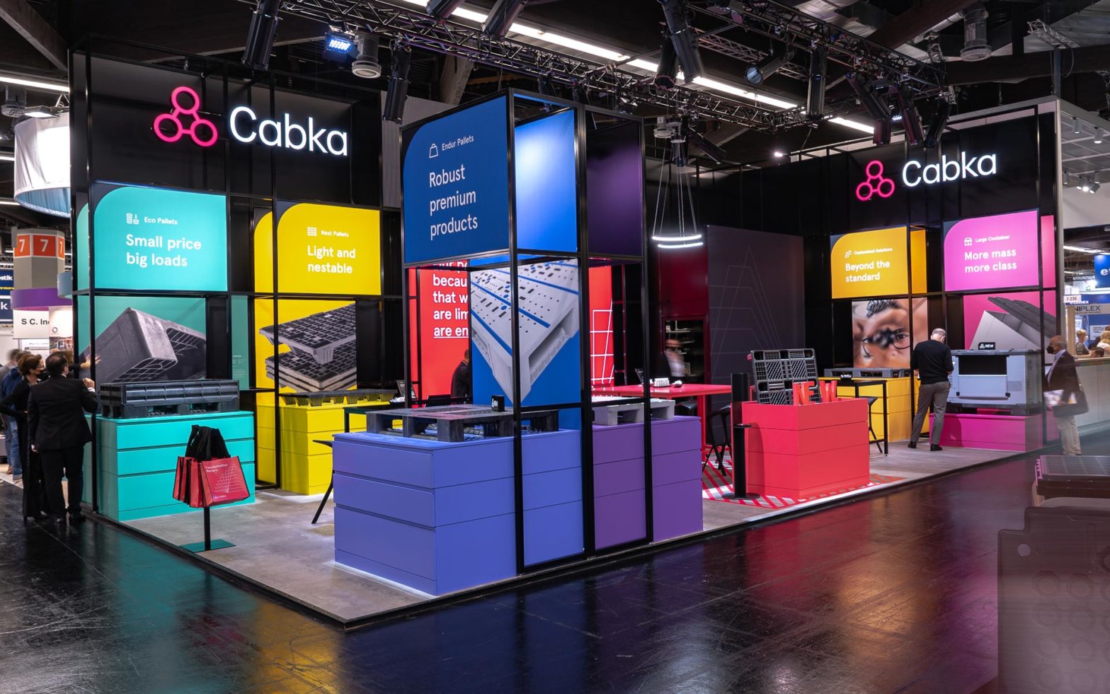 Im Zuge der neuen Corporate Identity unseres Neukunden Cabka wurde das Thema RAUM neu aufgesetzt und ganz im Sinne der Themen Nachhaltigkeit, Recycling und Innovation umgesetzt. Das Messe-Kit ist durch und durch modular gedacht und für den Wiedereinsatz an unterschiedlichen Orten konzipiert.