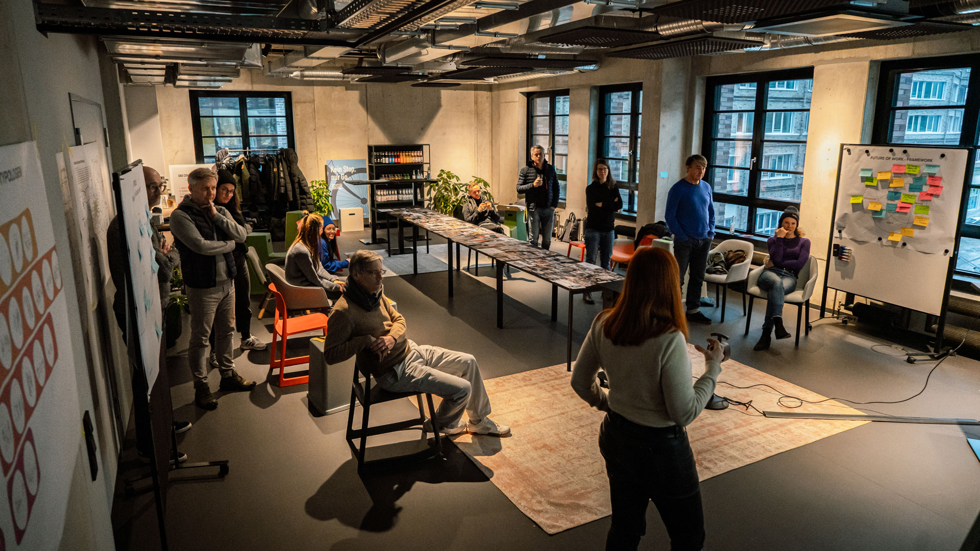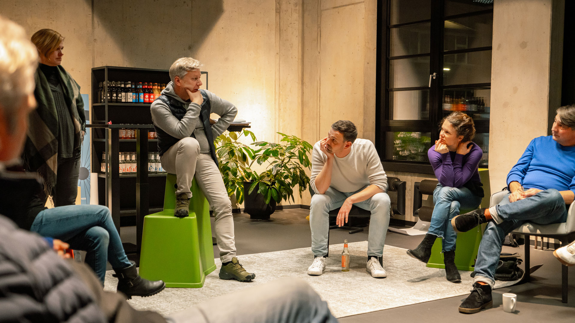 Wir arbeiten kollaborativ in interdisziplinären Teams, die von einem holistischen Denken geprägt sind. Statt Aufgaben einzelnen Disziplinen zuzuordnen, stellen wir je nach Projekt spezifische Teams zusammen, fördern und fordern Eigeninitiative ebenso wie eine unterstützende Haltung im Team. Dafür stehen uns Räume in unterschiedlichen Größen zur Verfügung, die je nach Bedarf belegt werden, besonders beliebt ist unser Wintergarten. In den flexiblen Settings treffen wir unsere Kollegen:innen ebenso wie Kunden:innen, Bewerber:innen oder Gäste bei Veranstaltungen und Workshops.