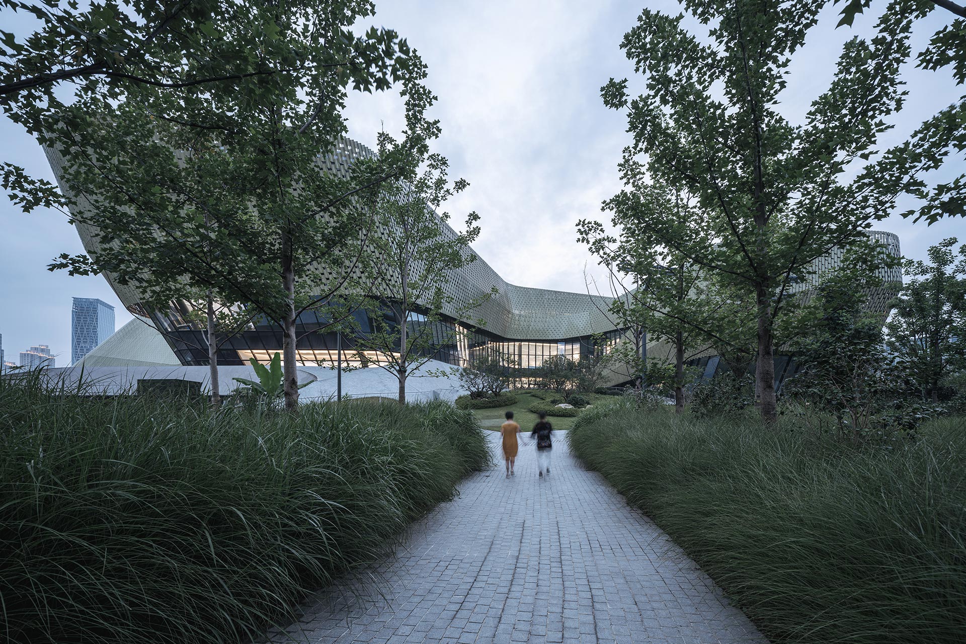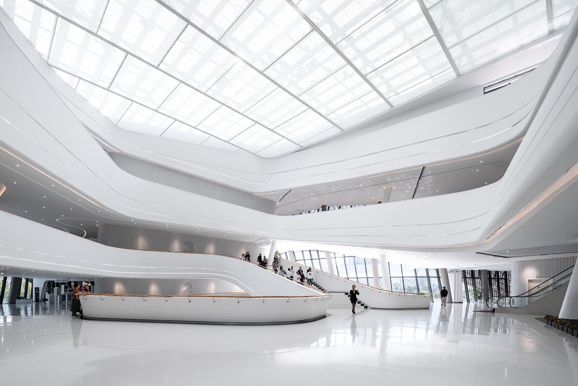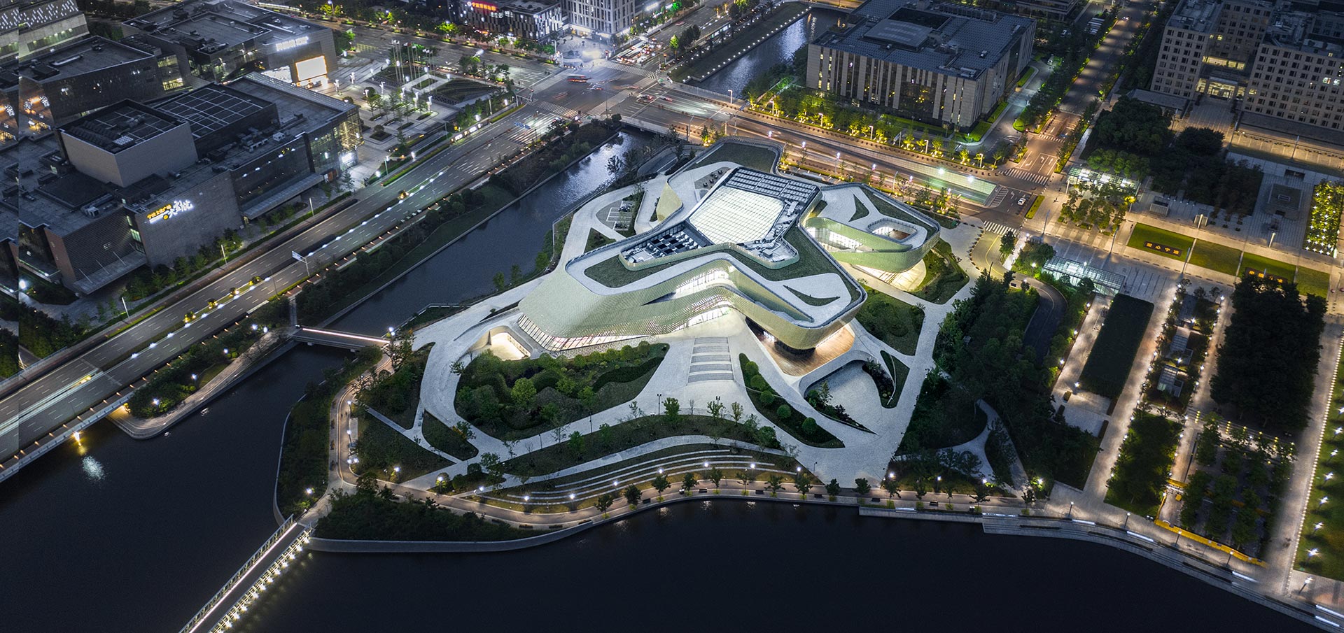 The City of Ningbo has a rich history in ceramic production. It was here that the so-called Ceramic Road began, and the city played an important role in the national and international trade of ceramics throughout the civilization’s history. That said, the use of ceramics is not simply an homage to the local traditions of Ningbo; the building’s textured glazedceramics also create ephemeral reflections of surrounding cityscape. These reflections animate the facade with varying intensity depending on time of day, season, weather, etc.