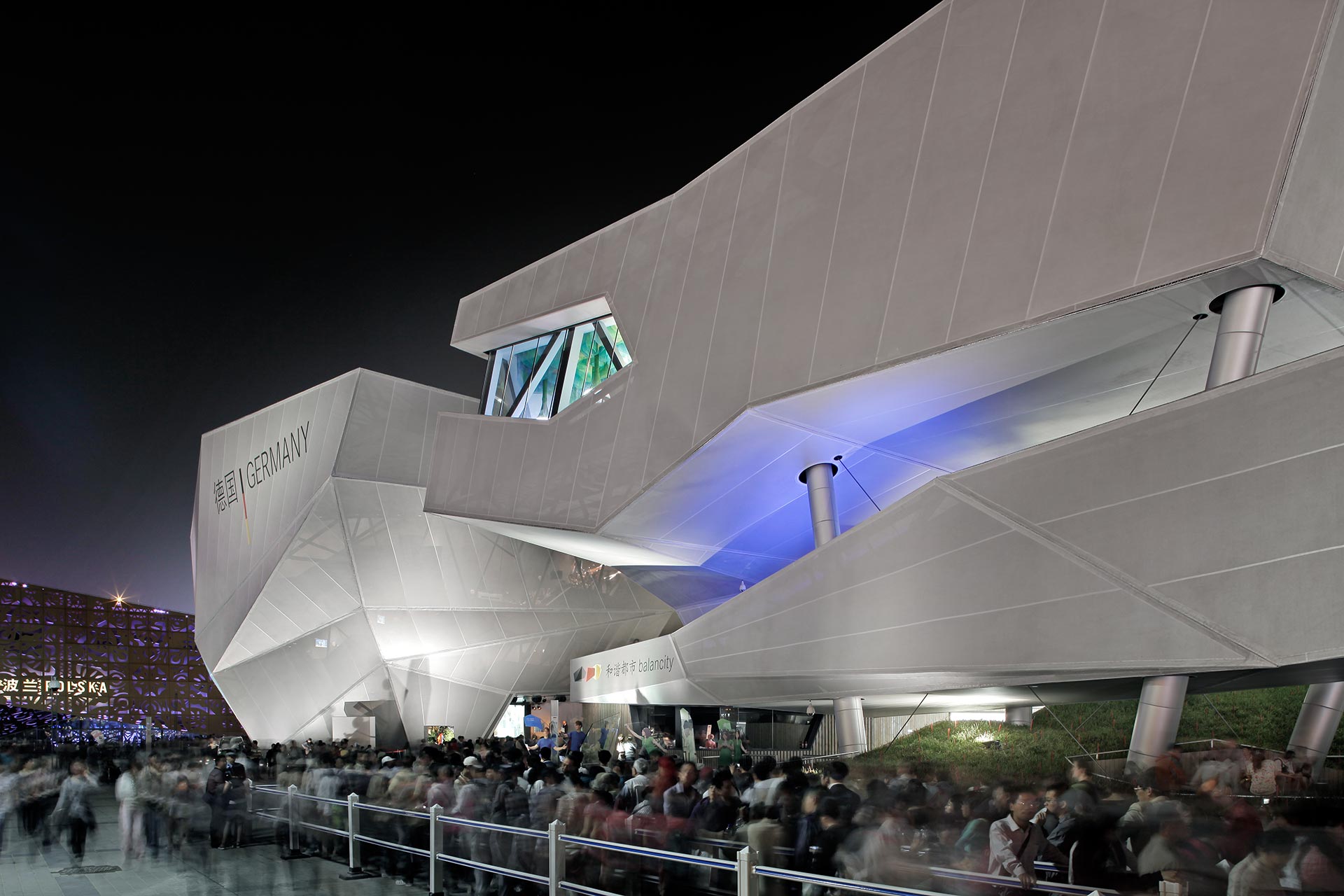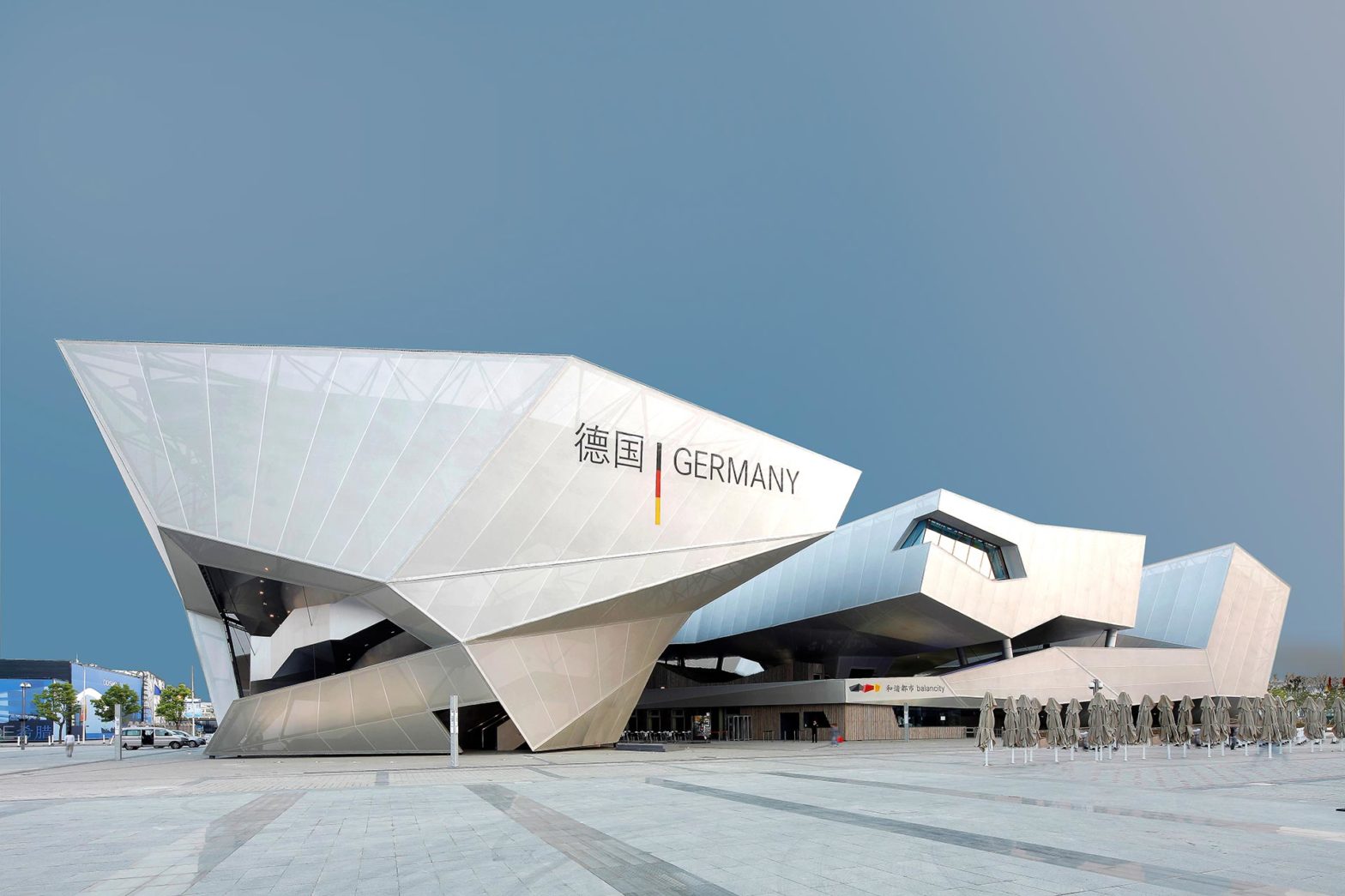 “balancity”, der Titel des deutschen Beitrags, widmet sich – im Rahmen des Expo-Mottos “Better City, Better Life” – dem Thema „Gleichgewicht“, in welchem die Bausteine einer Stadt zueinander stehen müssen, um sie zu einer lebenswerten Stadt zu machen. Dieses Gleichgewicht drückt der Pavillon auf den ersten Blick anschaulich aus als Balance zwischen seinen einzelnen Baukörpern. Allein betrachtet sind sie instabil, als Ensemble aber halten sie sich gegenseitig perfekt im Gleichgewicht, was die Idee von balancity architektonisch umsetzt.