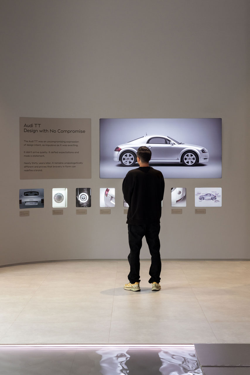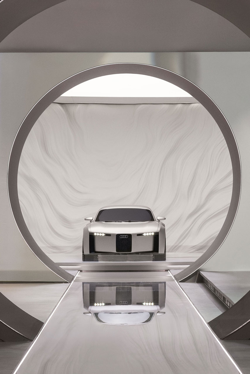Audi zeigt nicht einfach Fahrzeuge, sondern die Essenz der Marke – verdichtet auf Haltung und Zukunftsvision. Kein klassischer Messeauftritt, sondern eine neue Form der Markenpräsentation.