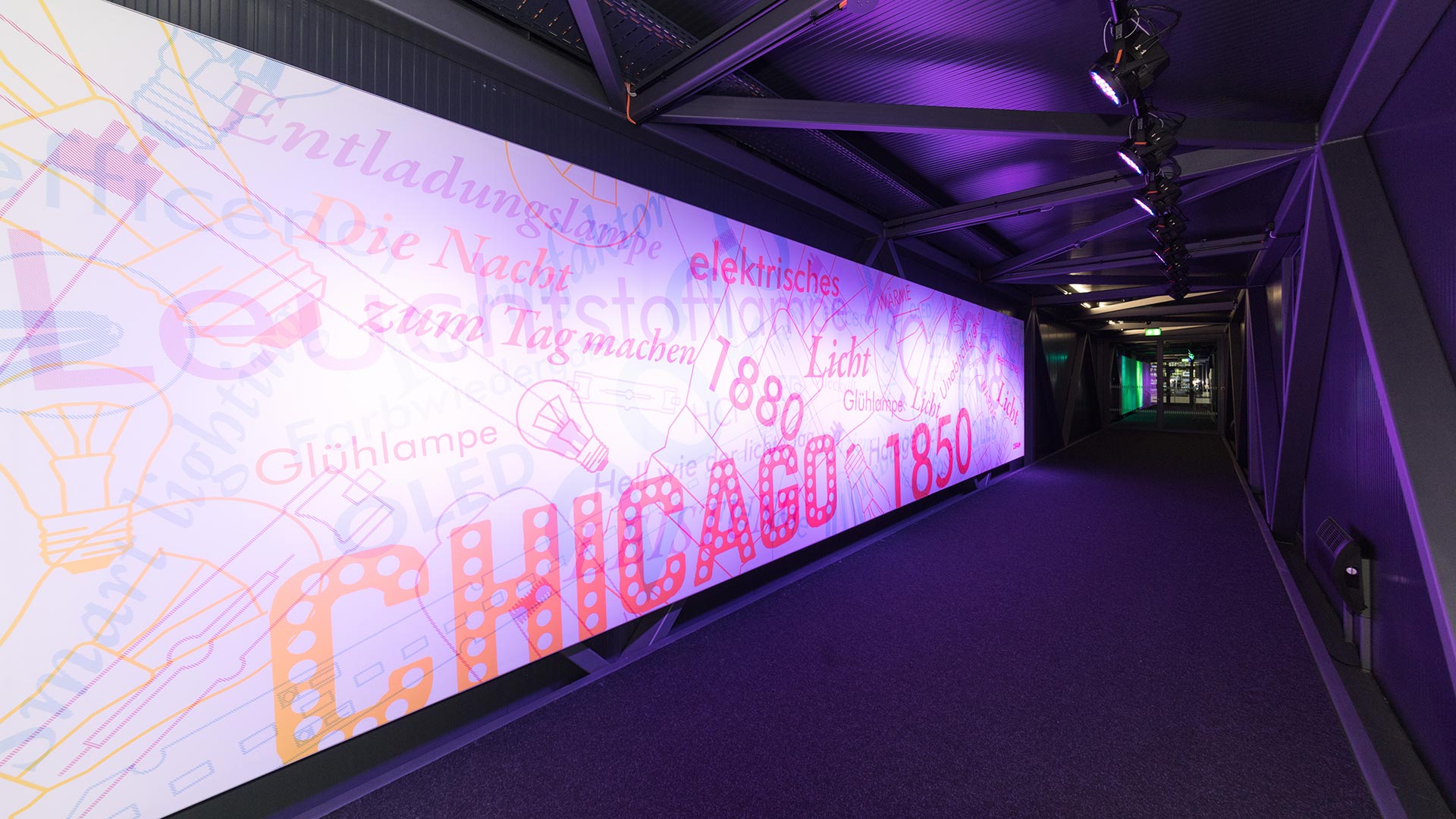 Konfuzius sagt: „Der Weg ist das Ziel“. Besucher:innen des deutschen Museums sagen: „Stimmt!“ Das Zentrum für neue Technologien ZNT wird während der Renovierung derzeit über einen 120 Meter langen Stahltunnel in luftiger Höhe erreicht. Damit aber auch der Übergang zum Erlebnis wird, hat SCHMIDHUBER für OSRAM eine Installation geschaffen, die den Museumsgänger:in die faszinierende Welt des Lichts erleben lässt.