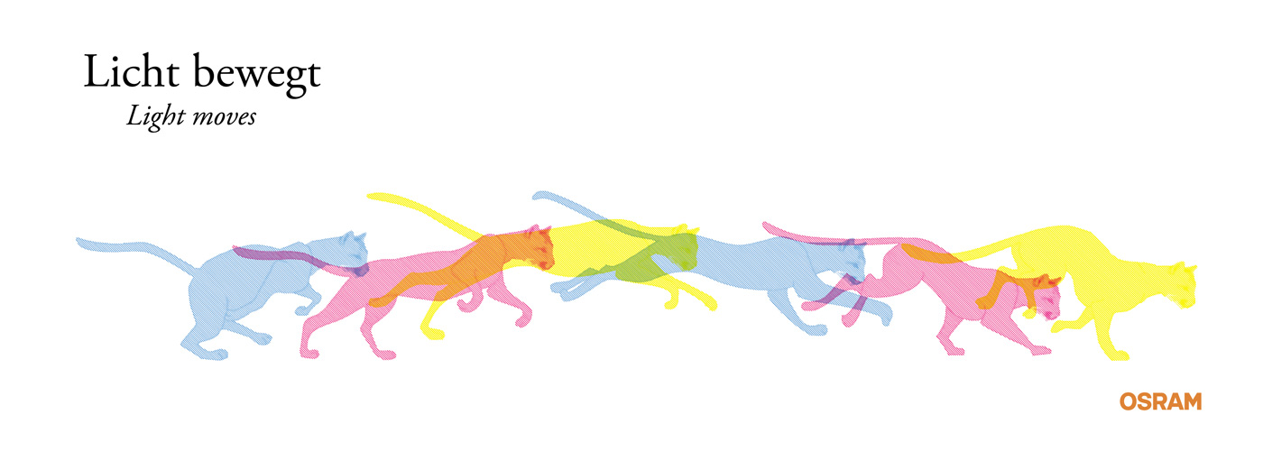 Überlagerte Bildmotive erscheinen und verschwinden durch Veränderung des jeweiligen RGB Anteils und Projektion auf ein gigantisches Multilayer-Plakat. Der Besucher sieht dadurch immer wieder neue, unterschiedliche Inhalte. Er erlebt faszinierende Sinnestäuschungen und simulierte Bewegungen: „Licht ist mehr als nur Beleuchtung“.